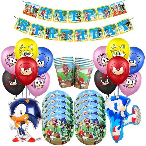 Decoración de Fiesta con Temática de Sonic the Hedgehog, Vajilla Desechable para Cumpleaños, Acción de Gracias, Ramadán, Incluye Banderín