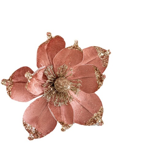 20cm Simulation Magnolia Christmas Flower Gluing Powder Sequins Decorative Wreath Accessories for Christmas Tree Decorations