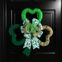 Nơ trang trí ngày lễ Thánh Patrick bằng nhựa họa tiết cỏ ba lá, màu đỏ, điểm xuyết chấm xanh lá cây