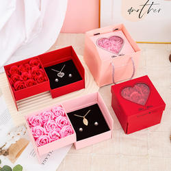 Hộp quà tặng Valentine sáng tạo: nhẫn, dây chuyền, hoa hồng, hộp trang sức có cửa sổ, hoa xà phòng